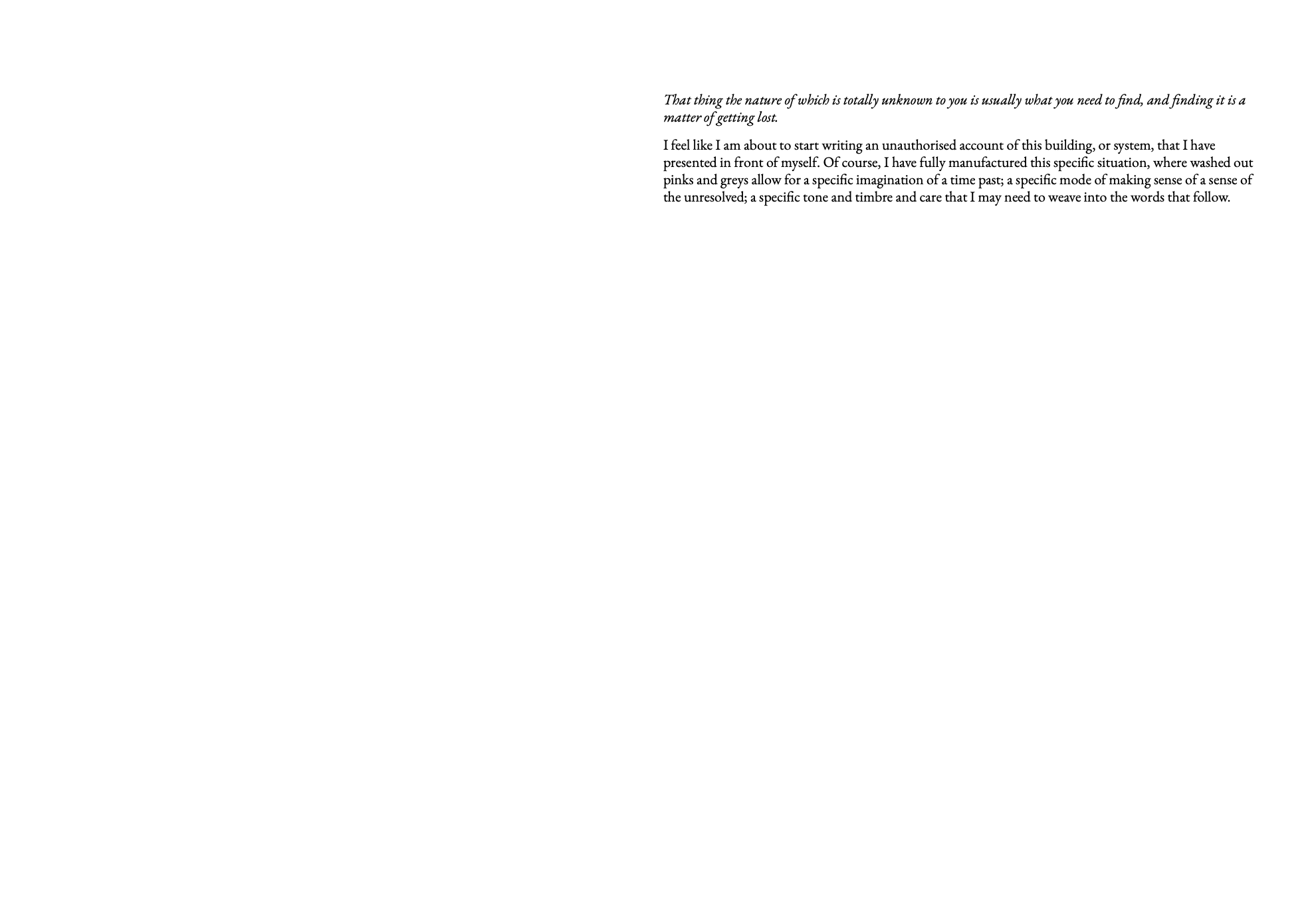 I have a special interest in digital histories, and how digital theory intersects with architecture. I like to play with various methods and mediums of visual and textual art-making, with and without computers.